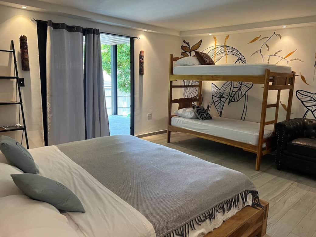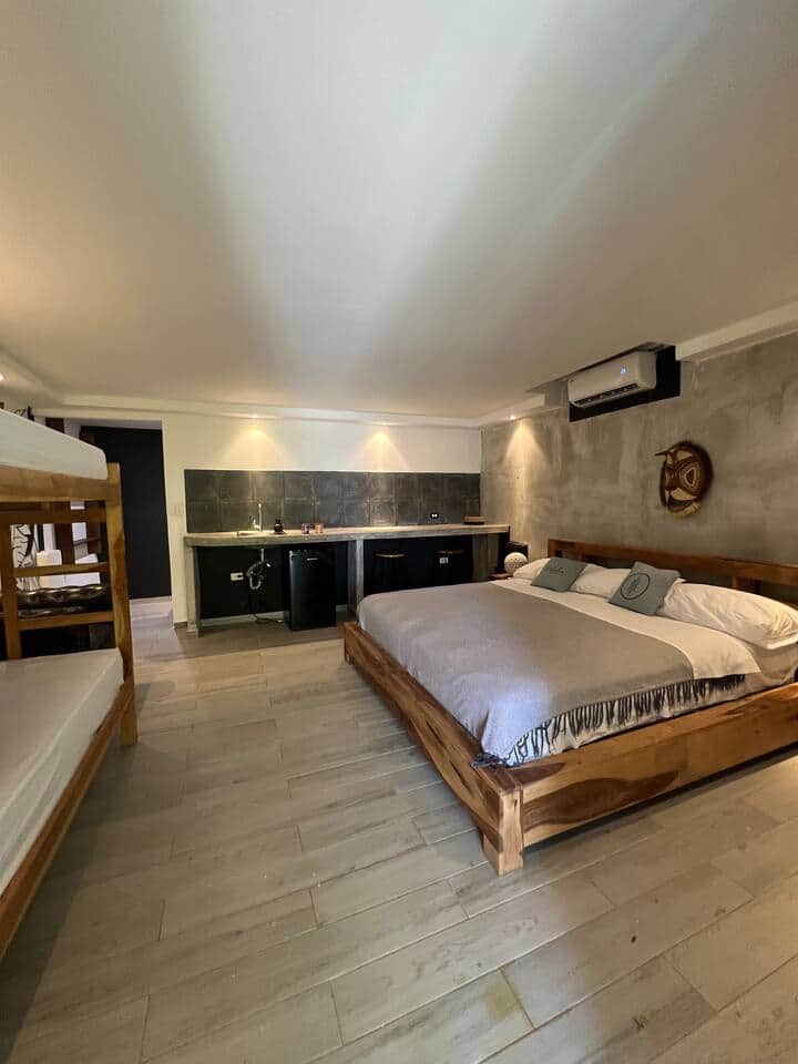 Designed with families in mind, the suite features a king-size bed and a bunk bed with two individual beds—ideal for up to 4 guests. Enjoy restful nights with air conditioning, soft linens, and the convenience of a private bathroom stocked with essentials.